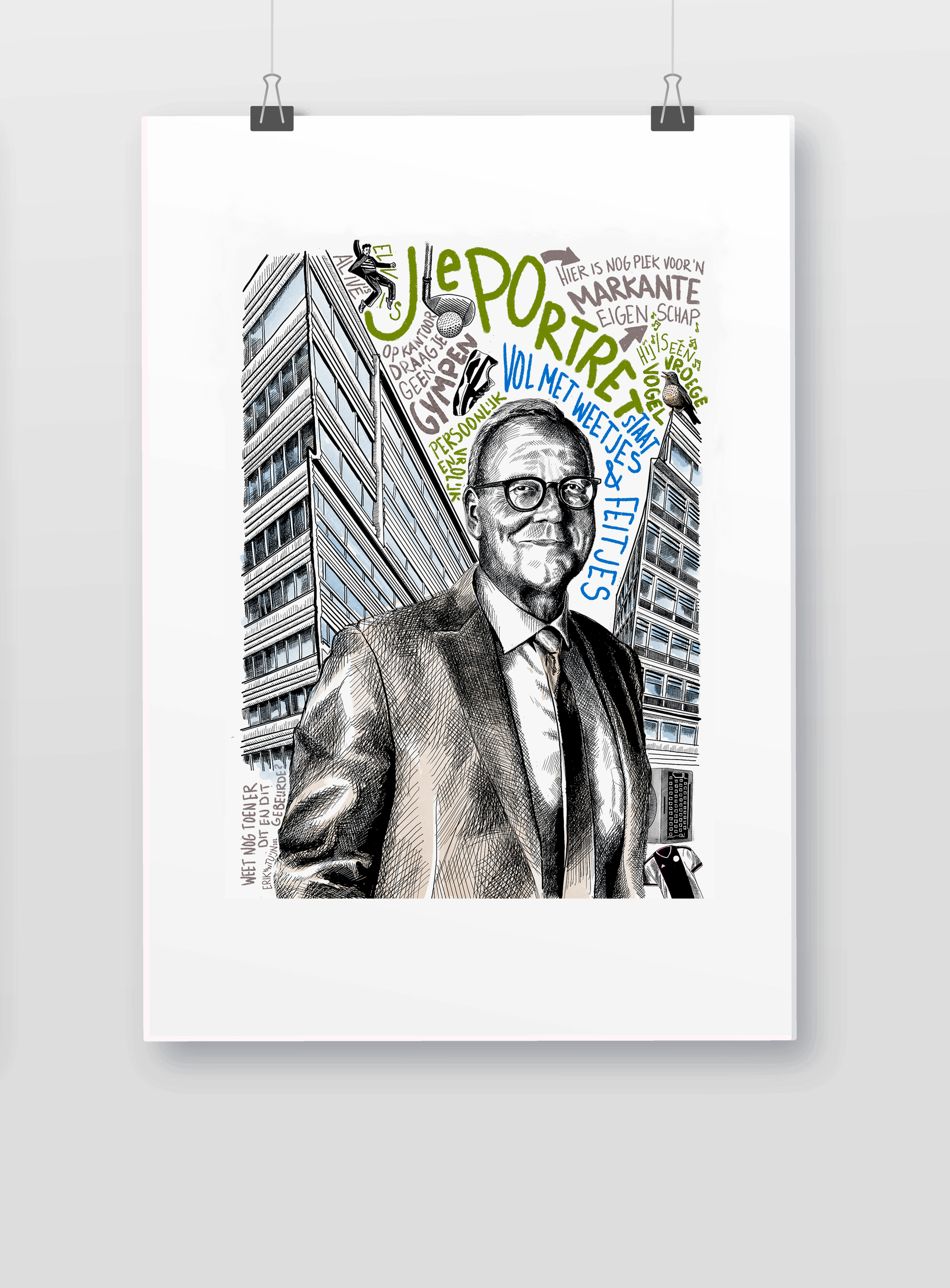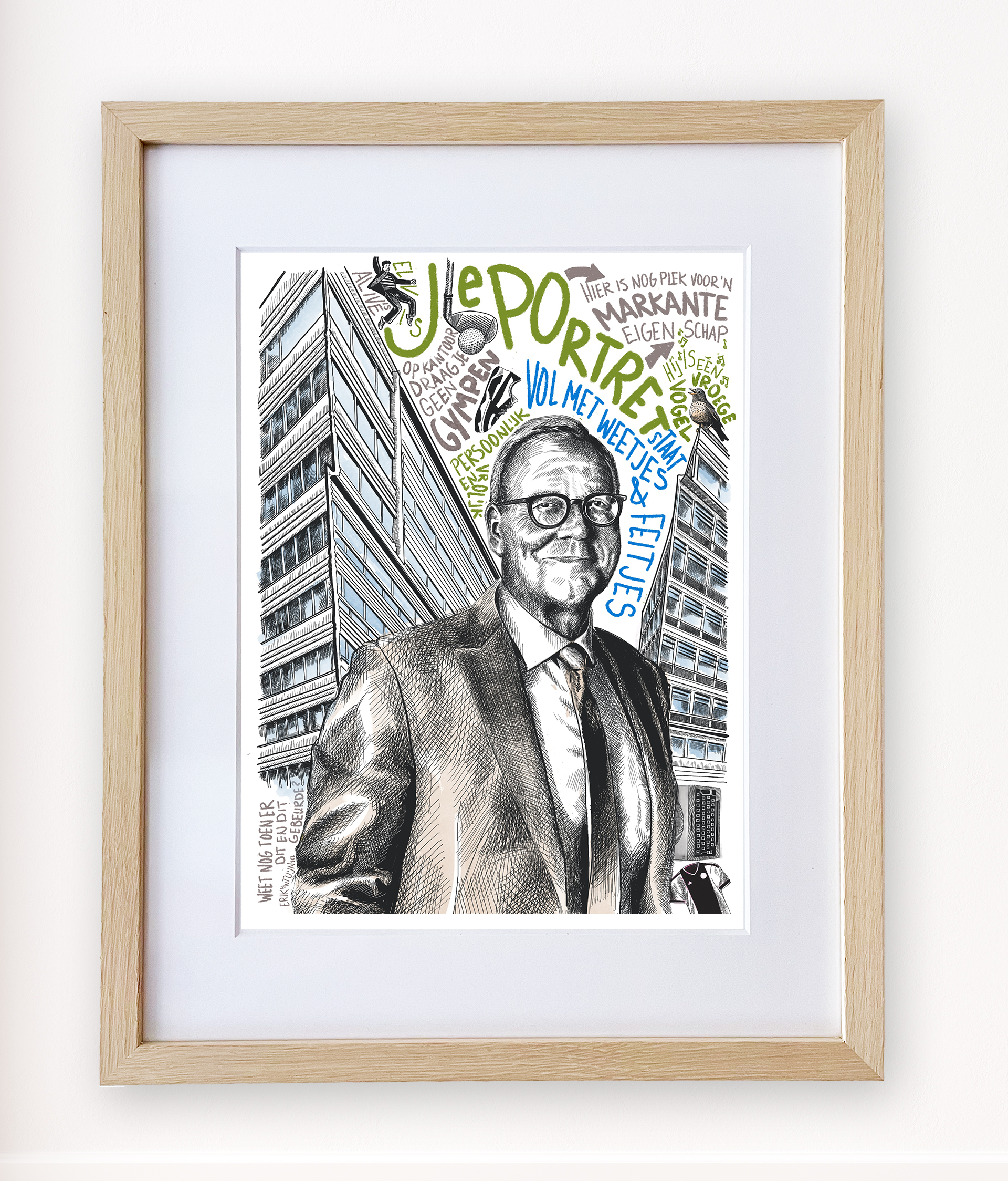Wil je ook zo'n gepersonaliseerd portret bestellen? Dat kan. Je kunt een portretten bestellen via onderstaande bestelknop. Laat je contactgegevens achter en Blijstift neemt contact met je op voor een inputgesprek en het doorsturen van fotomateriaal. Heb je een speciaal verzoek? Dat kan ook. Neem dan even contact op via het Blijstift contactformulier.