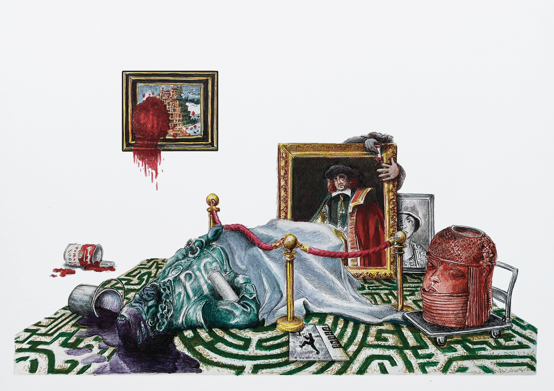 Maar kunst is regelmatig ook inzet van stevige maatschappelijke discussies. Zowel in het werkveld van de kunsthistorici zelf (denk aan de restauratie van de Gouden Koets), maar ook als doelwit van anderen om een punt te maken: je kunt er tomatensoep overheen gooien, jezelf er aan vastlijmen, of het hele ding zo van zijn sokkell trekken.